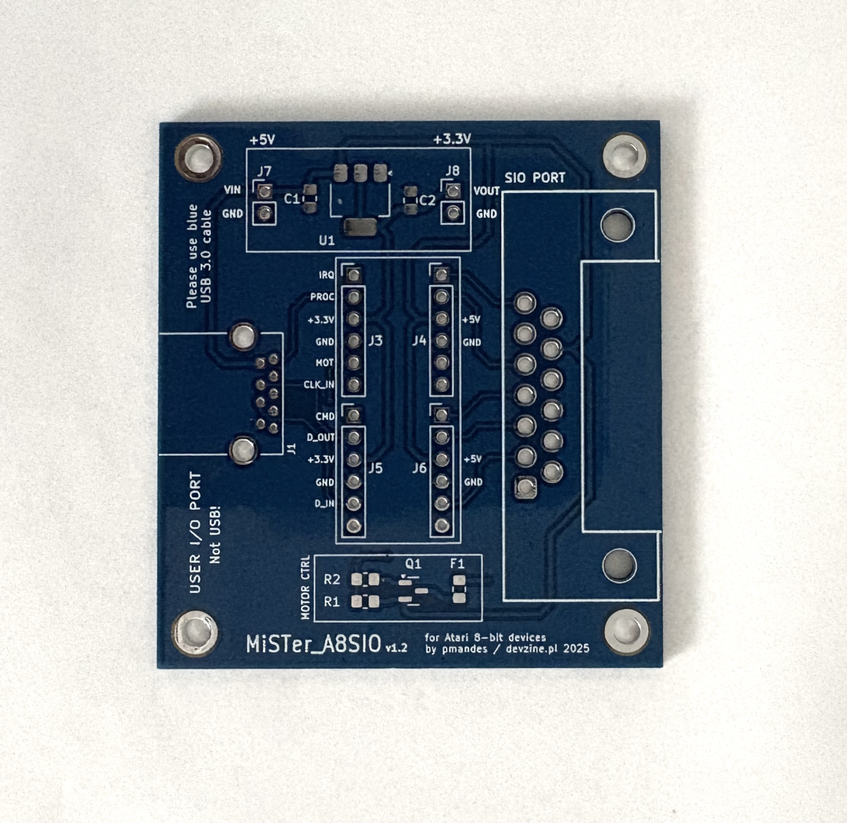 Neosazená deska plošných spojů adaptéru pro připojení SIO zařízení k MiSTer s jádrem Atari 800. Více informací na stránce projektu.